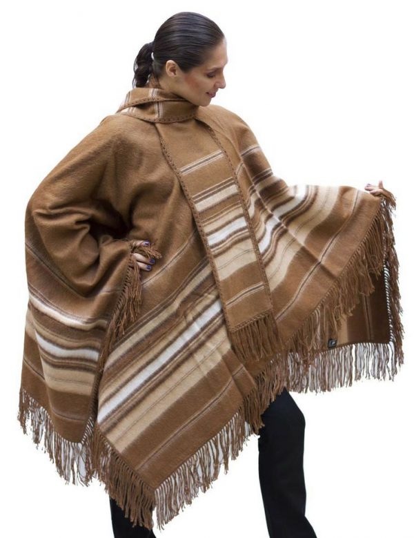 This is a beautiful scarf alpaca poncho woven in Peru. Has a band around the poncho and comes with an attached scarf, Your natural color, this poncho will keep you warm in style.