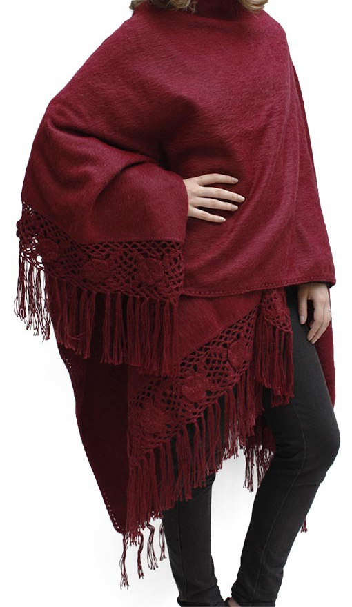 This garment has a classic and feminine design made in Perú. It is versatile and can be used for all occasions during cold winter seasons. This unique shawl makes a wonderful birthday, anniversary, Christmas and holiday gift.