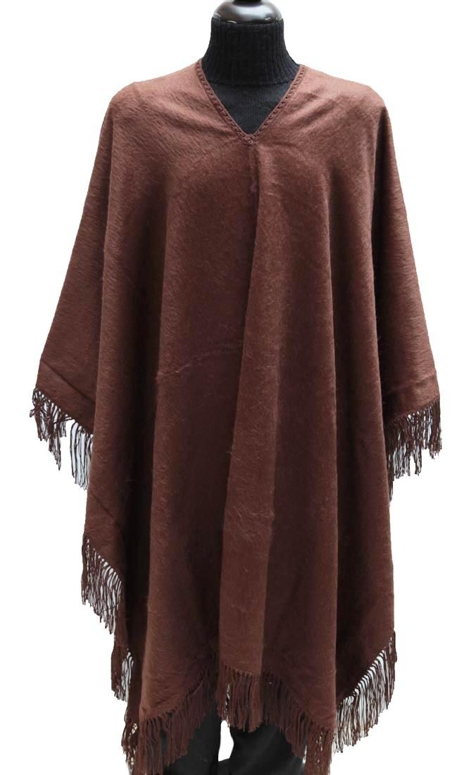 • Alpaca Wool Winter Fringed Poncho Brown